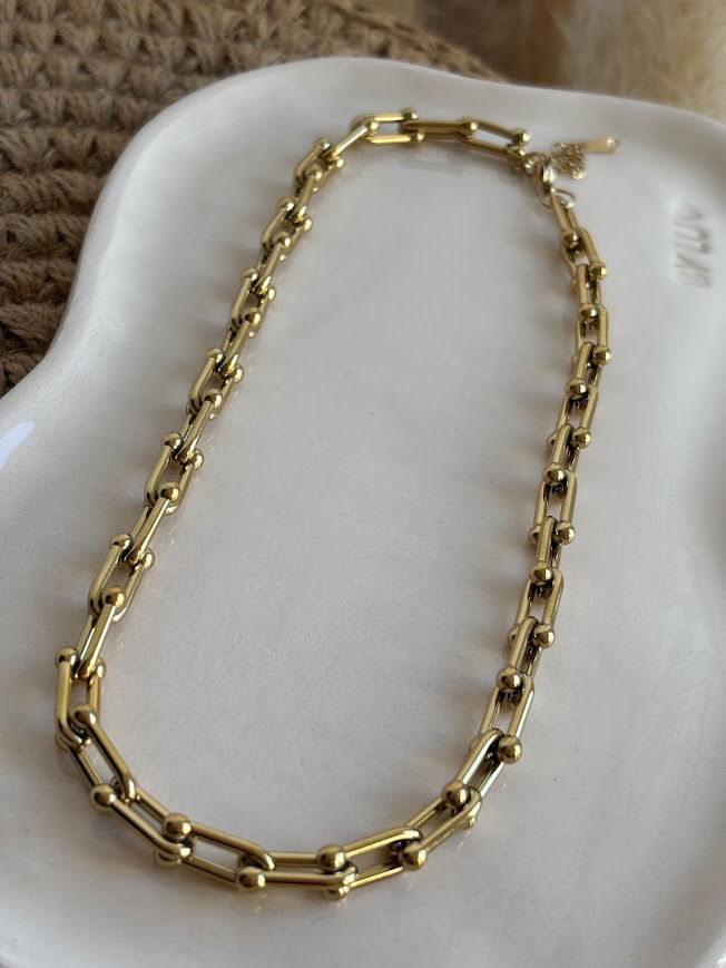 Material: Acero quirúrgico 316L enchapado en oro 18K.Largo: 40 cm + 5 cm de extensión.Hipoalergénico y waterproof.